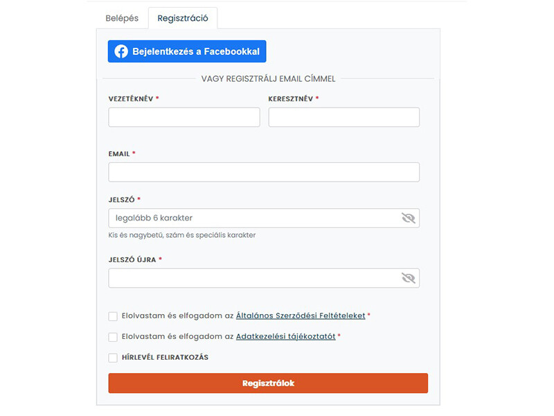 Regisztrációkor kérlek töltsd ki az oldal jobb oldalán található regisztrációs űrlapot, illetve pipáld be az Általános Szerződési Feltélek és az Adatkezelési tájékoztató jelölőnégyzetét is. Egyúttal érdemes feliratkoznod hírlevél szolgáltatásunkra is a legjobb ajánlatokért és a hasznos információkért.