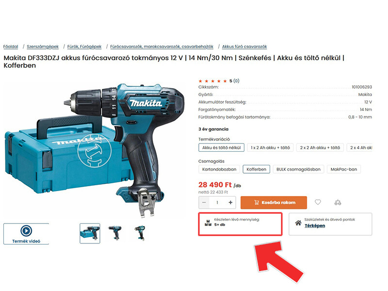Ha nem csak arra vagy kíváncsi, hogy van-e készleten az általad kiválasztott termék, hanem szeretnéd megtudni pontosan melyik szaküzletünkben mennyi van készleten, akkor kérlek kattints a "Szaküzletek és átvevő pontok" feliratra.