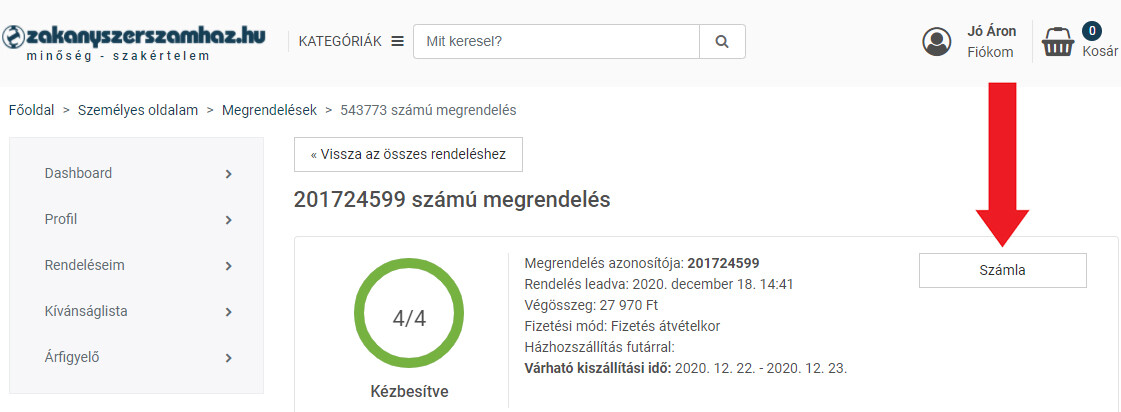 Utánvétes fizetés esetén csak egy darab letölthető bizonylatot találsz a rendelésnél. Ezt a "Számla" gombra kattintva találod, ami az általunk kiállított számla a rendelésről.