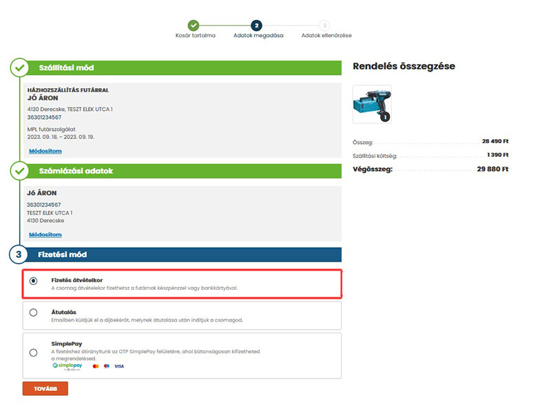 A rendelési folyamat második lépésénél tájékozódhatsz az adott futárszolgálatnál elérhető fizetési lehetőségekről. Az adott futárcégtől függ, hogy lehetséges-e a bankkártyás fizetés.